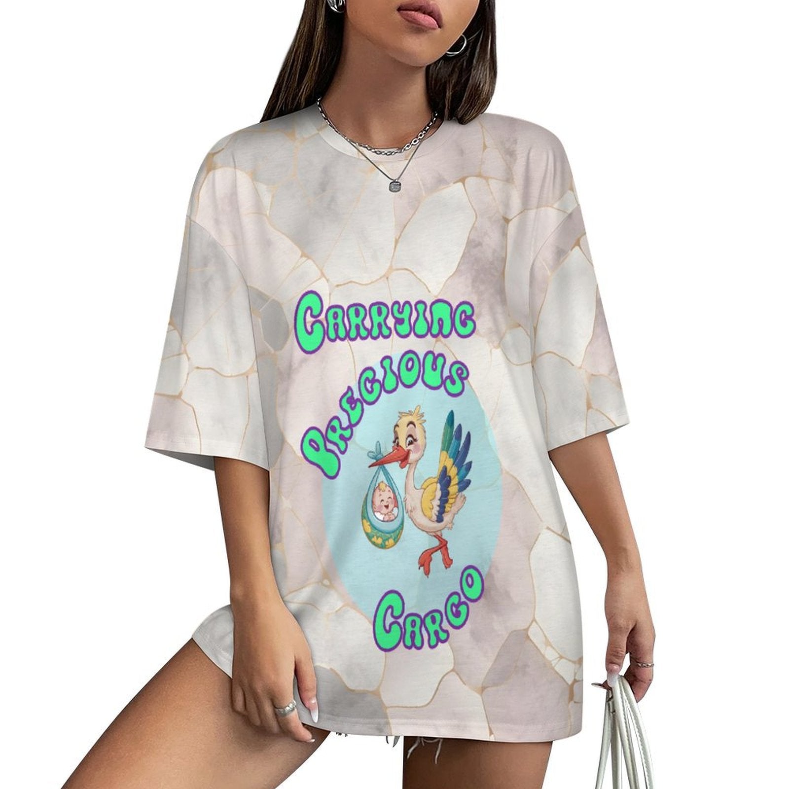 Drop Shoulder, Mid-Sleeve Tee with 'Carrying Precious Cargo' Maternity Design